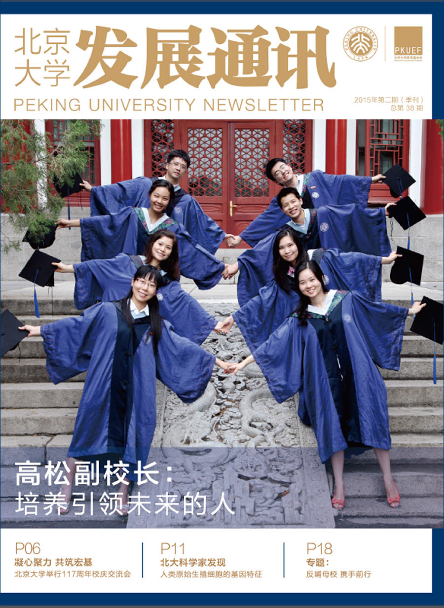 2015年,《北京大學(xué)發(fā)展通訊》經(jīng)全新改版,更加注重選題策劃、特別聚焦菁英人物。“大學(xué)之道”、“北大時(shí)訊”、“慈善人物”、“名師風(fēng)采”、“菁菁學(xué)子”等欄目的設(shè)置讓內(nèi)容更為豐富、充實(shí)。