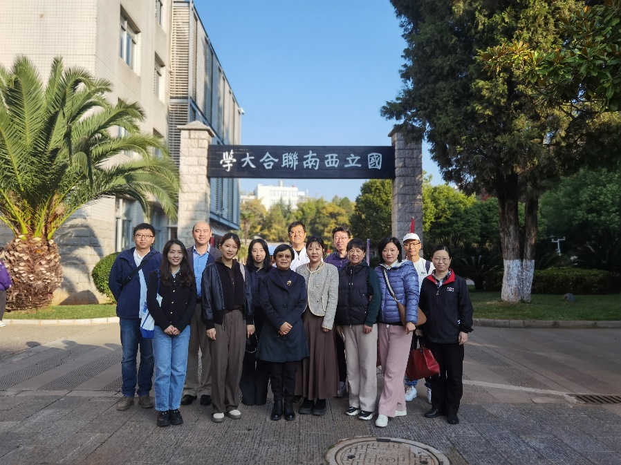 11月29日,調研團一行人赴云南大學呈貢校區(qū)調研學習。建校100年來,云南大學風雨兼程,砥礪前行,此行在檔案館(黨史校史研究室)館長李懷宇的引領下,調研團參觀了“會澤百家、至公天下——云南大學百年校史展”。展覽以學術發(fā)展和愛國榮校為主線,圍繞學校歷史發(fā)展過程中的重大事件、重要人物及重要成就,從“篳路藍縷、走向興盛”“革故鼎新、探索前行”“踔厲奮發(fā)、再譜華章”“創(chuàng)建一流、文明允臻”四個方面,呈現(xiàn)了云南大學的悠久歷史、優(yōu)良傳統(tǒng)、卓越精神和蓬勃發(fā)展。