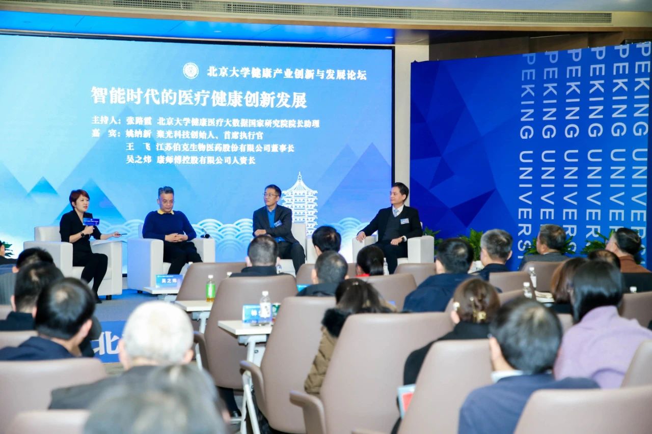 張路霞教授主持圓桌對(duì)話環(huán)節(jié),與聚光科技創(chuàng)始人姚納新、江蘇伯克生物醫(yī)藥股份有限公司董事長(zhǎng)王飛、康師傅控股人資長(zhǎng)吳之煒圍繞“智能時(shí)代的醫(yī)療健康創(chuàng)新發(fā)展”這一話題展開深入的探討交流。