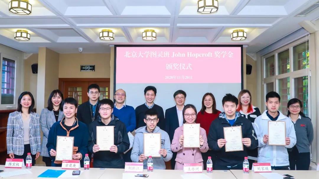 11月20日,首屆北京大學(xué)圖靈班 John Hopcroft 獎(jiǎng)學(xué)金頒獎(jiǎng)儀式舉行。北京大學(xué)講席教授、前沿計(jì)算研究中心主任 John Hopcroft 教授通過(guò)視頻參與,信息科學(xué)技術(shù)學(xué)院副院長(zhǎng)、圖靈計(jì)劃管理委員會(huì)主任胡振江教授,部分獲獎(jiǎng)學(xué)生和捐贈(zèng)企業(yè)代表出席儀式。