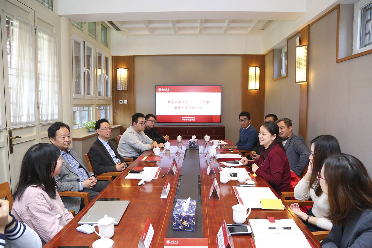 10月25日,成美學(xué)會(huì)紀(jì)念基金韓國研學(xué)團(tuán)匯報(bào)會(huì)在北京大學(xué)教育基金會(huì)舉行。上海東星環(huán)保油墨有限公司董事長鄭旭東、副總經(jīng)理陳善忠,北京大學(xué)教育基金會(huì)秘書長李宇寧,學(xué)生資助中心主任陳征微、副主任石運(yùn)佳、基金會(huì)項(xiàng)目管理部部長禹潔和獲獎(jiǎng)學(xué)生代表等共同出席。
