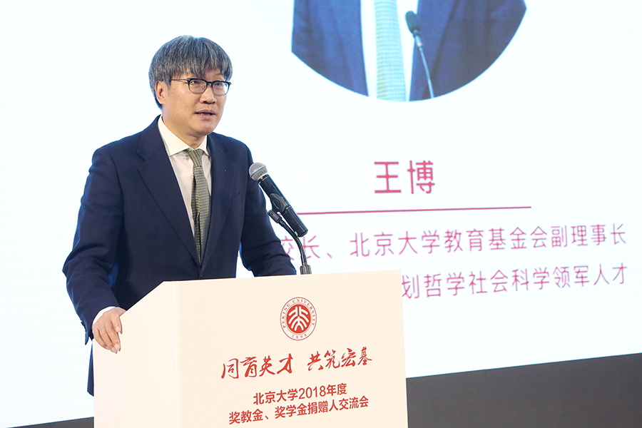 王博副校長在致辭中誠摯感謝各位捐贈方對北大教育事業(yè)和學術發(fā)展的熱忱關切與支持。他認為來自社會各界的資金和情感上的支持是對北大的充分認可與肯定,給予師生不斷成長以動力。“何以守位曰人,何以聚人曰財”,通過解讀《周易》中的名言,王博副校長表示,社會捐贈的意義和價值在于可以吸引更優(yōu)秀的師資,匯聚更優(yōu)質的資源,助力北大成長為更好的大學,未來產(chǎn)生更多卓越成果。他相信,在社會各界與北大的共同努力下,未來北大會建設得更加美好,為國家和世界做出更大的貢獻。