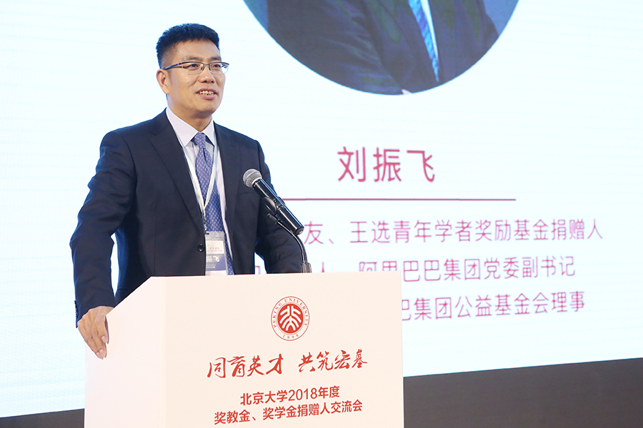 王選青年學者獎勵基金捐贈人、阿里巴巴合伙人、高德集團總裁劉振飛校友回憶起在北大讀書時王選老師對自己的教誨與精神激勵。他認為自己在互聯(lián)網(wǎng)領域所獲得的事業(yè)成績離不開時代的發(fā)展機遇,更源于母校北大的辛勤培養(yǎng)。他希望在民族復興的偉大新時代,北大學子能夠志存高遠、不斷奮斗,將自身理想融入于國家與時代的發(fā)展進程中。他愿意通過自身的努力支持北大培養(yǎng)更多卓越人才,尤其是基礎理論的創(chuàng)新型人才,為人類進步、國家富強、民族復興和人民幸福做出更多貢獻。