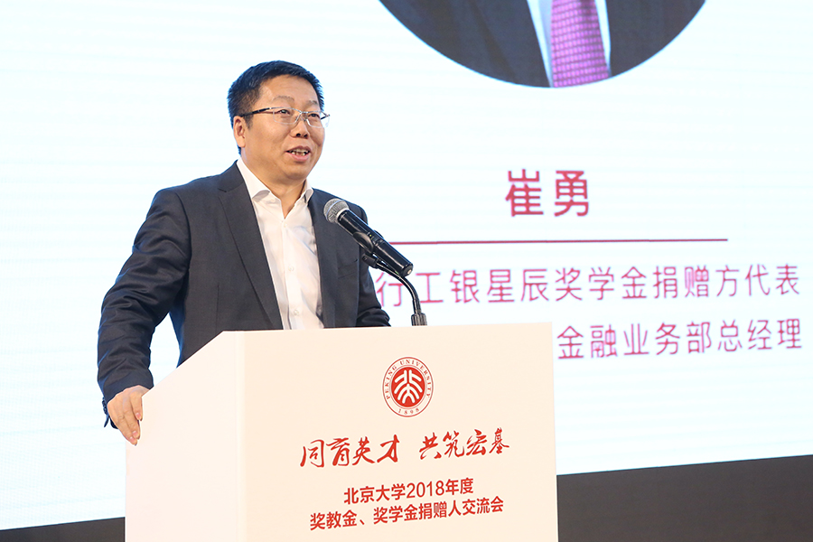 工商銀行工銀星辰獎學金捐贈方代表、中國工商銀行股份有限公司金融業(yè)務部總經(jīng)理崔勇表示,多年來,北大為工行的發(fā)展持續(xù)提供人才支持。與北大的合作讓工行在企業(yè)自身的發(fā)展中擁有更大的信心,在“中國企業(yè)走出去”的道路上獲得更大成績。他指出,工行重視對科技創(chuàng)新人才的培養(yǎng),希望通過對北大的支持,讓更多學子步入社會時能夠傳播北大的優(yōu)秀精神和文化,為社會做出更多貢獻。同時,他號召具有社會責任感的企業(yè)和個人通過更多渠道和方式支持北大的發(fā)展建設。