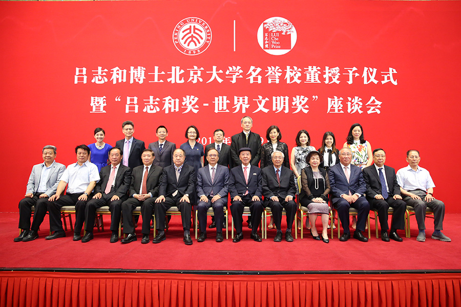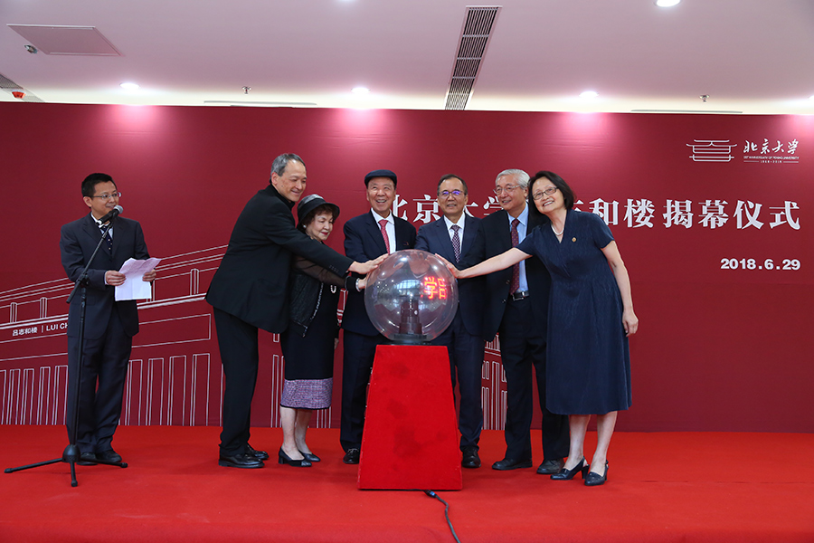 6月29日,嘉華集團(tuán)主席及 “呂志和獎(jiǎng)”創(chuàng)辦人呂志和博士攜夫人呂趙錦屏女士及家人一行蒞臨北京大學(xué),獲聘北京大學(xué)名譽(yù)校董榮銜,共同為北京大學(xué)“呂志和樓”揭幕。