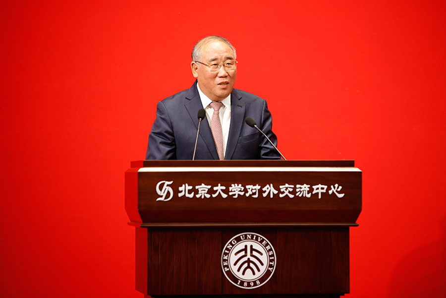 隨后,現(xiàn)場(chǎng)嘉賓圍繞“可持續(xù)發(fā)展:中國(guó)的角色、機(jī)遇和挑戰(zhàn)”的主題開(kāi)展座談,湯超教授主持座談會(huì)。解振華先生和莫言博士先后致辭。