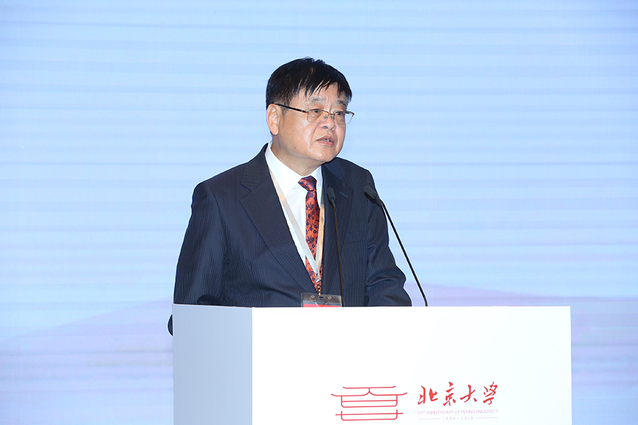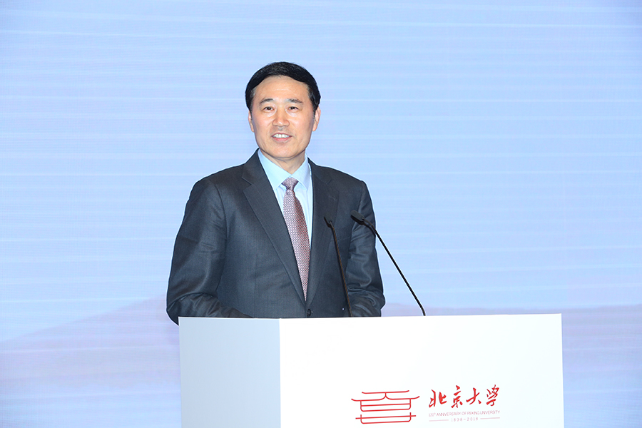 在一曲《燕園情》和一部回顧各界與北大攜手的短片《筑夢(mèng)北大》之后,論壇正式開始。林建華首先致辭。他指出,昨天上午,習(xí)近平總書記來北京大學(xué)考察,并發(fā)表重要講話,是對(duì)北大的巨大鼓舞和激勵(lì),也是對(duì)全國(guó)青年、全國(guó)教育界的巨大鼓舞和激勵(lì)。林建華表示,北大的120年,承載著中華民族奮起復(fù)興的波瀾壯闊的歷史進(jìn)程,承載著一所大學(xué)登高望遠(yuǎn)、矢志一流的理想追求,承載著社會(huì)各界遠(yuǎn)見之士共襄教育、引領(lǐng)未來的拳拳之心。各界有識(shí)之士的支持,代表著社會(huì)、民族和世界對(duì)北大、對(duì)教育和對(duì)未來的期許。相信北大一定能夠早日走在世界一流大學(xué)前列,為中華民族的偉大復(fù)興、為人類文明的進(jìn)步,做出更重要的貢獻(xiàn)。