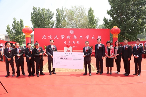 新奧集團和北京大學于2015年7月簽署協(xié)議。新奧集團向北京大學進行公益性捐贈,總額共3億元人民幣,用于基礎設施建設、重點課題研究、人才培養(yǎng)和技術產業(yè)化等。其中,2億元人民幣用于新奧工學大樓的建設。這是雙方努力改善工學院教學科研基礎環(huán)境的重要舉措。開工典禮上,郝平與王玉鎖代表雙方進行了大樓建設款項的交接儀式。