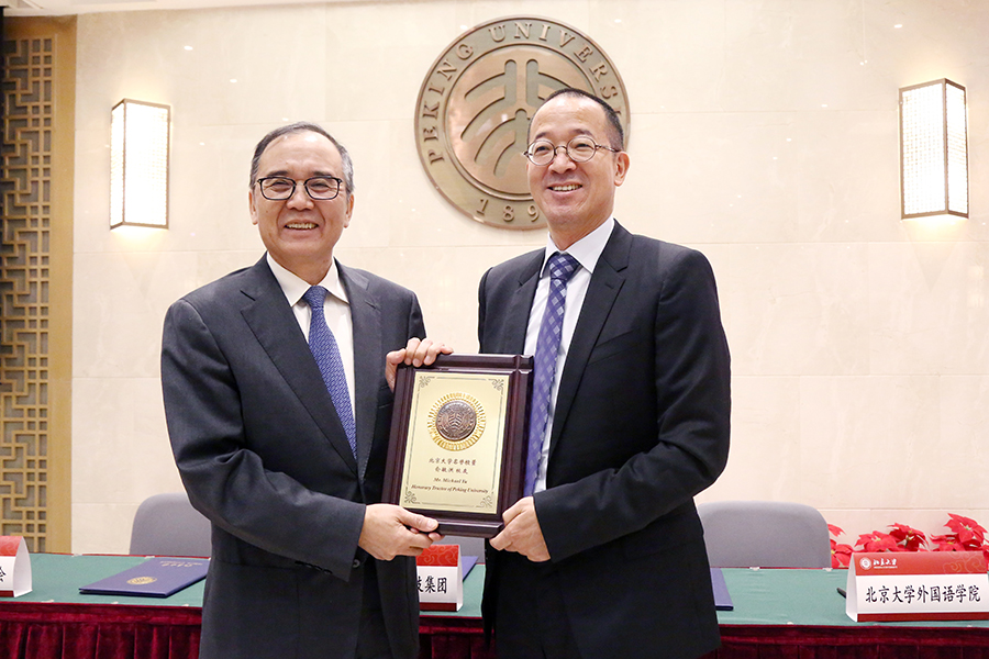 4月23日,北京大學(xué)新東方教育基金捐贈(zèng)儀式在教育基金會(huì)北大之友報(bào)告廳舉行。新東方教育科技集團(tuán)董事長俞敏洪校友宣布捐資5000萬元,設(shè)立“北京大學(xué)新東方教育基金”,支持北大外國語學(xué)院的師資建設(shè)與人才培養(yǎng),助力北大 “雙一流”建設(shè),為北大120周年校慶獻(xiàn)禮。北京大學(xué)決定聘請(qǐng)俞敏洪校友為北京大學(xué)名譽(yù)校董,期望在未來俞敏洪校友能夠更密切地參與母校的發(fā)展建設(shè),以其智慧和豐富的社會(huì)經(jīng)驗(yàn)為母校獻(xiàn)計(jì)獻(xiàn)策。