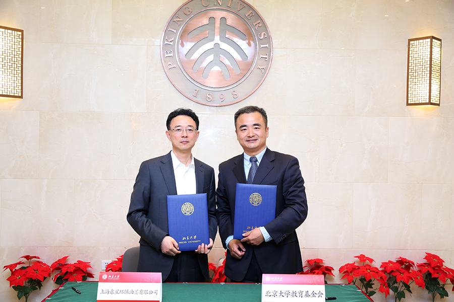 上海東星環(huán)保油墨有限公司董事長鄭旭東,副總經(jīng)理陳善忠,北京大學(xué)副校長、教育基金會副理事長王博,教育基金會秘書長李宇寧,副秘書長趙文莉,學(xué)生資助中心主任陳征微以及學(xué)生服務(wù)總隊的同學(xué)代表等共同出席儀式。教育基金會副秘書長胡俊主持儀式。