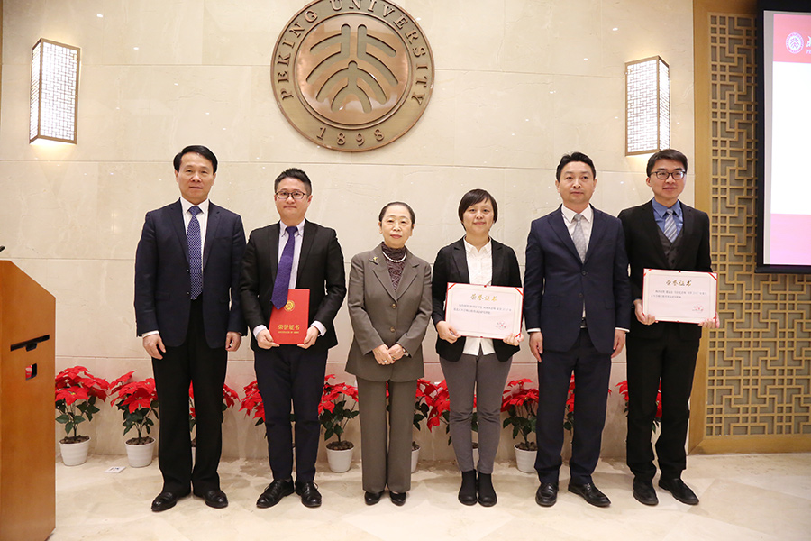 12月4日下午,北京大學(xué)桐山教育基金頒獎儀式隆重舉行。日本阿含宗理事長和田尚子女士再次蒞臨北京大學(xué),為獲獎教師頒獎。阿含宗顧問松本輝臣、國際部科長真木和子、中國事務(wù)局局長史學(xué)軍、總務(wù)科長吉田博二等隨行來訪。林建華校長會見了和田理事長一行。中國國際友好聯(lián)絡(luò)會常務(wù)副秘書長岑松、常務(wù)理事高榮鑄,北京大學(xué)副校長詹啟敏、醫(yī)學(xué)部副主任肖淵、社會科學(xué)部副部長王周誼、教育基金會副秘書長趙文莉和獲獎老師共同出席頒獎儀式。北京大學(xué)教育基金會秘書長李宇寧主持儀式。