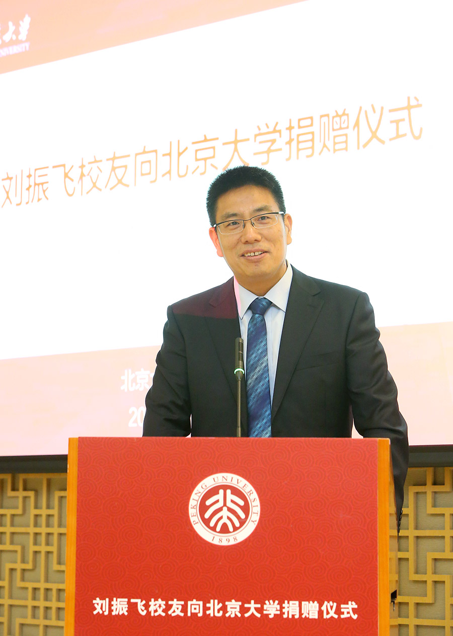 劉振飛校友是王選先生的學(xué)生、現(xiàn)為阿里巴巴集團(tuán)合伙人、首席風(fēng)險(xiǎn)官、黨委副書記、高德總裁、公益基金會(huì)理事。他懷著感恩之心回顧了自己與王選先生的初次相識(shí)和在北大學(xué)習(xí)、工作的七年歲月,從中他感受到了王選先生對(duì)年輕人發(fā)自內(nèi)心的愛(ài)護(hù)與鼓勵(lì)。劉振飛校友表示,王選先生特別愛(ài)惜、支持青年人才,王選青年學(xué)者獎(jiǎng)勵(lì)基金的設(shè)立是對(duì)王選精神的延續(xù),是對(duì)北大青年學(xué)者,也是對(duì)中國(guó)當(dāng)代青年人的激勵(lì)與引導(dǎo)。劉振飛校友希望盡己之力將這一獎(jiǎng)項(xiàng)做大做強(qiáng),成為全校乃至全國(guó)最具權(quán)威性的青年教師獎(jiǎng)勵(lì)基金項(xiàng)目,延攬和培育一批中國(guó)最具卓越創(chuàng)新能力的青年學(xué)者,將王選先生一生的拼搏精神和振興中華的愛(ài)國(guó)豪情發(fā)揚(yáng)光大。