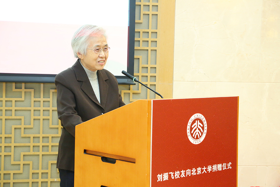陳堃銶教授在致辭中表達(dá)了自己對(duì)劉振飛校友夫婦的感動(dòng)之情。她細(xì)致回憶了當(dāng)年計(jì)算機(jī)科學(xué)技術(shù)研究所從事科研工作的艱辛歷程和學(xué)校的鼎力支持,講述了王選青年學(xué)者獎(jiǎng)勵(lì)基金設(shè)立背后的故事和種種細(xì)節(jié)。她提到,王選先生深知“尚未成名的、有才華、有潛力的小人物”最需要支持,這源于王選先生在科研奮斗中的親身體會(huì)。她對(duì)劉振飛校友在事業(yè)上做出卓越成就之時(shí)不忘回報(bào)學(xué)校與老師的行為表示敬佩,也希望基金可以不斷發(fā)展壯大。