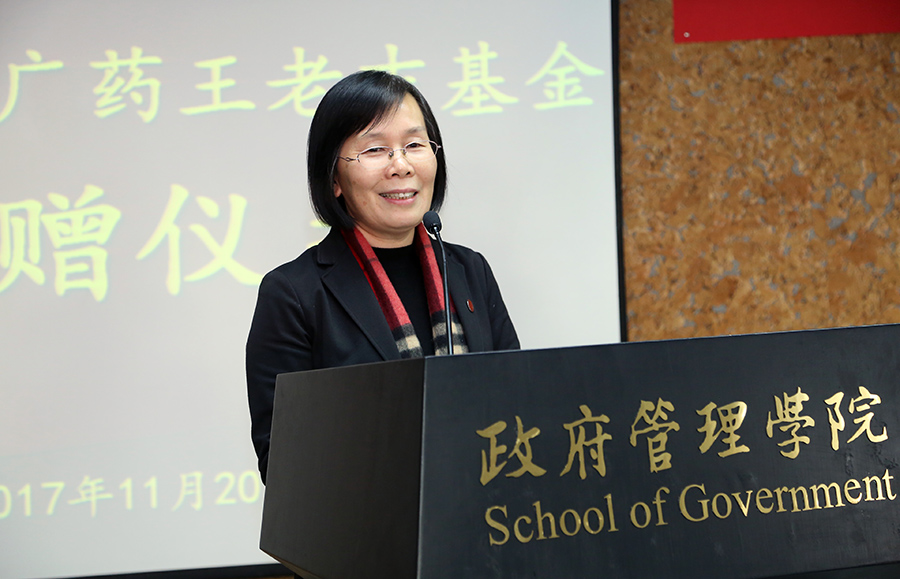 葉靜漪副書記代表學(xué)校向廣藥集團(tuán)頒發(fā)北京大學(xué)杰出教育貢獻(xiàn)獎(jiǎng)