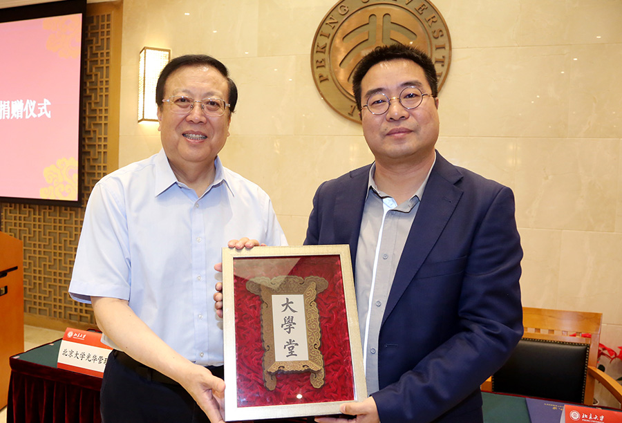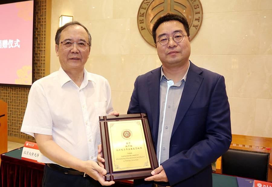 林建華校長向拉卡拉授予北京大學杰出教育貢獻獎