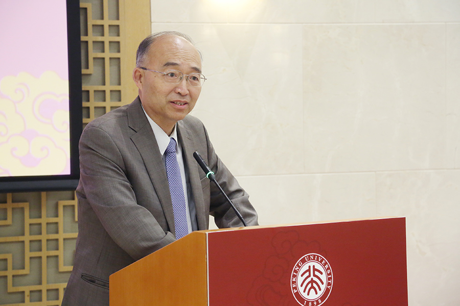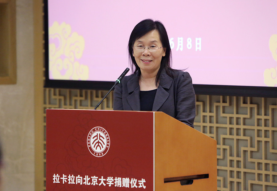拉卡拉董事長孫陶然校友,北京大學黨委書記郝平,校長林建華,常務(wù)副校長吳志攀,黨委副書記葉靜漪,校長助理、教育基金會秘書長鄧婭,財務(wù)部長、光華管理學院黨委書記冒大衛(wèi),光華管理學院院長劉俏,校友工作辦公室主任李宇寧,團委書記陳永利等與師生代表一同出席了捐贈儀式。吳志攀常務(wù)副校長代表學校致辭,黨委副書記葉靜漪主持捐贈儀式。