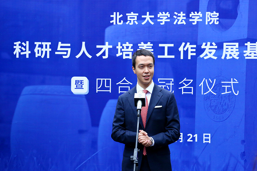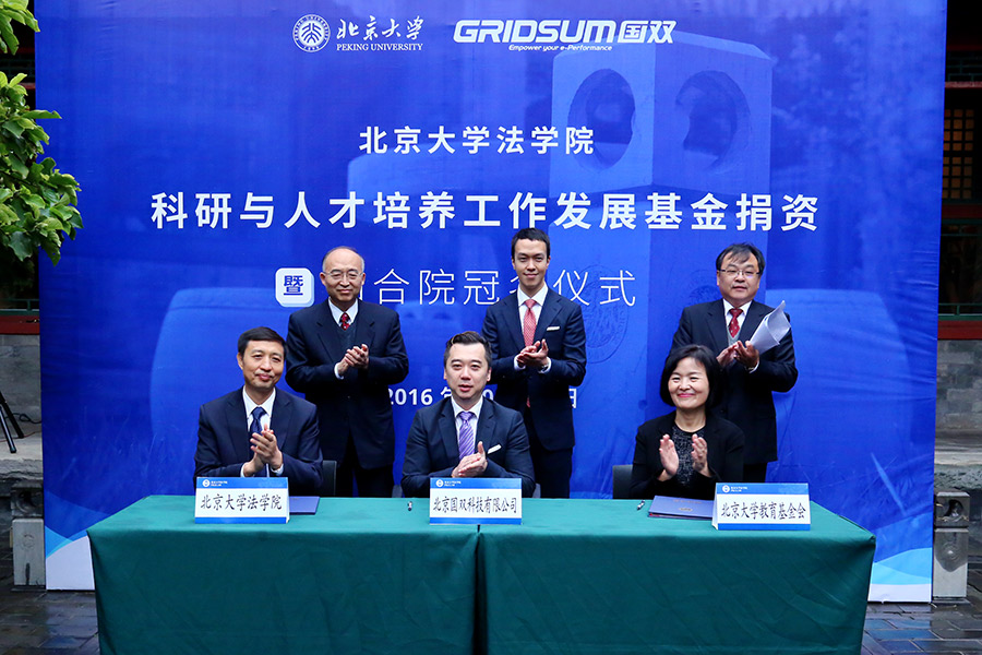 10月21日,“北京大學(xué)法學(xué)院科研與人才培養(yǎng)工作發(fā)展基金”捐資暨法學(xué)院四合院冠名儀式在北京大學(xué)蔣家胡同四合院舉行。北京國雙科技有限公司此次慷慨捐資,支持北京大學(xué)法學(xué)院科研和人才培養(yǎng)事業(yè),助力大數(shù)據(jù)法律研究和國家智庫的深入發(fā)展,以促進(jìn)法治學(xué)術(shù)研究繁榮進(jìn)步、推動法治實(shí)踐全面深化。