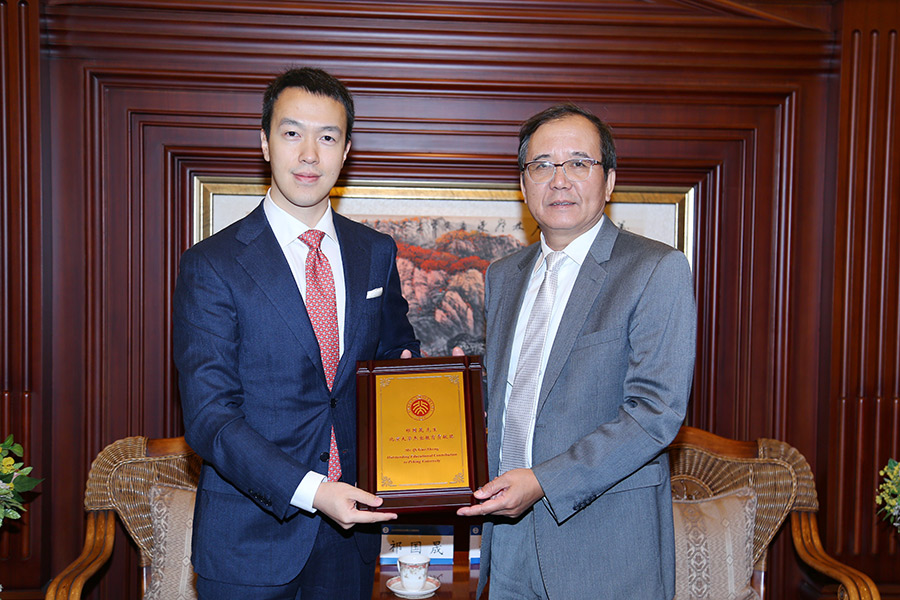 林校長向祁國晟董事長頒發(fā)“北京大學(xué)杰出教育貢獻(xiàn)獎(jiǎng)”