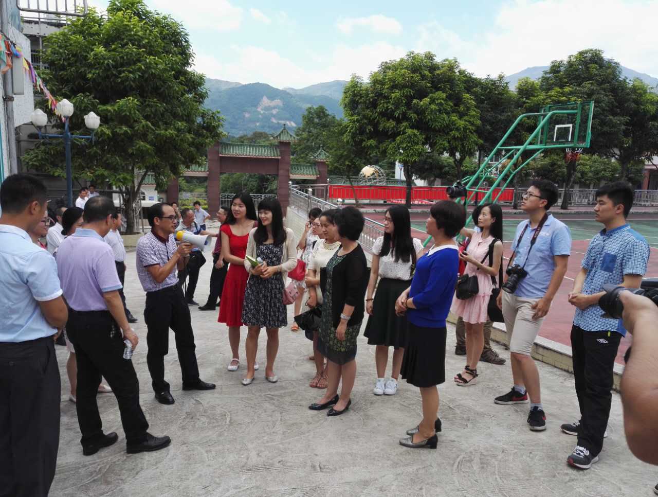 新塘中學(xué)校長為參訪團(tuán)介紹校園風(fēng)貌