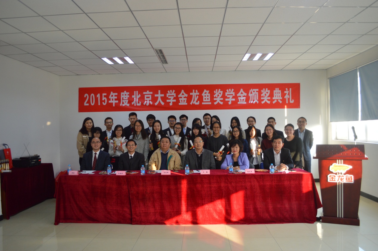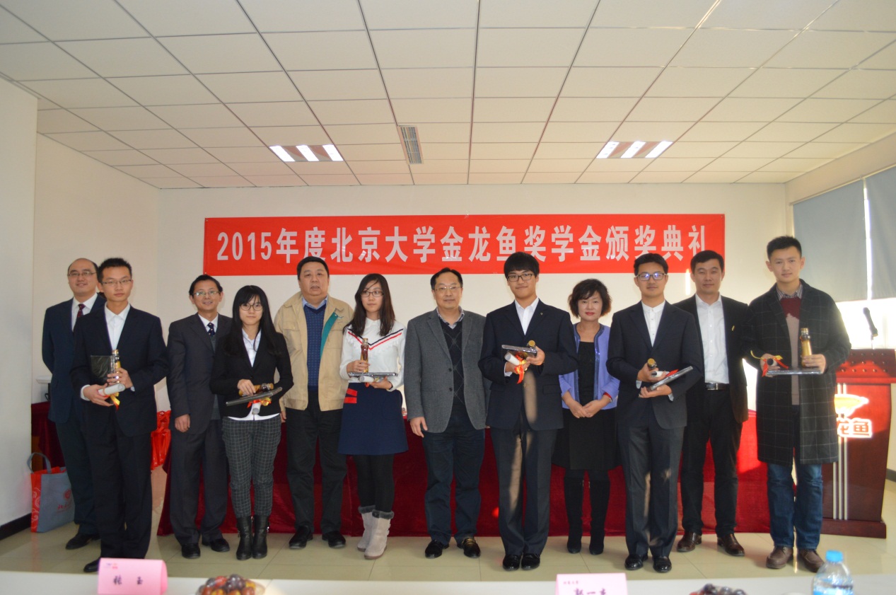 12月11日,2015年度北京大學(xué)金龍魚獎學(xué)金頒獎典禮舉行。益海嘉里集團公共事務(wù)部總監(jiān)王巍、北京糧油公司總經(jīng)理朱肖煒、金龍魚基金會經(jīng)理謝鵬飛、北京大學(xué)學(xué)生工作部副部長劉德英、北京大學(xué)教育基金會副秘書長趙文莉、胡俊以及獲獎學(xué)生出席。