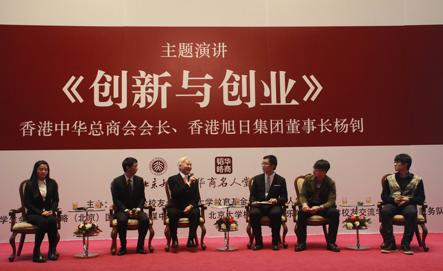 11月15日,香港中華總商會(huì)會(huì)長、旭日集團(tuán)董事長楊釗在北京大學(xué)“PKU Speech|華商名人堂”發(fā)表“創(chuàng)新與創(chuàng)業(yè)”主題演講。作為香港著名企業(yè)家、慈善家,楊釗先生分享了自己40多年商旅歷程中最核心的經(jīng)驗(yàn)與體會(huì),并與青年代表及北大學(xué)子進(jìn)行現(xiàn)場交流,帶來了一堂接地氣、非常實(shí)用的創(chuàng)業(yè)課。