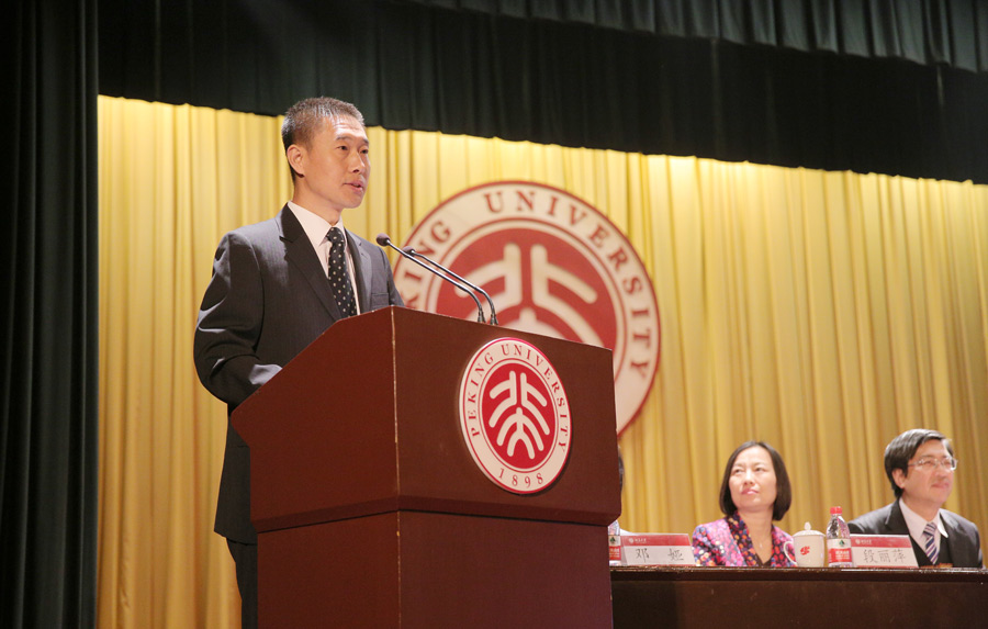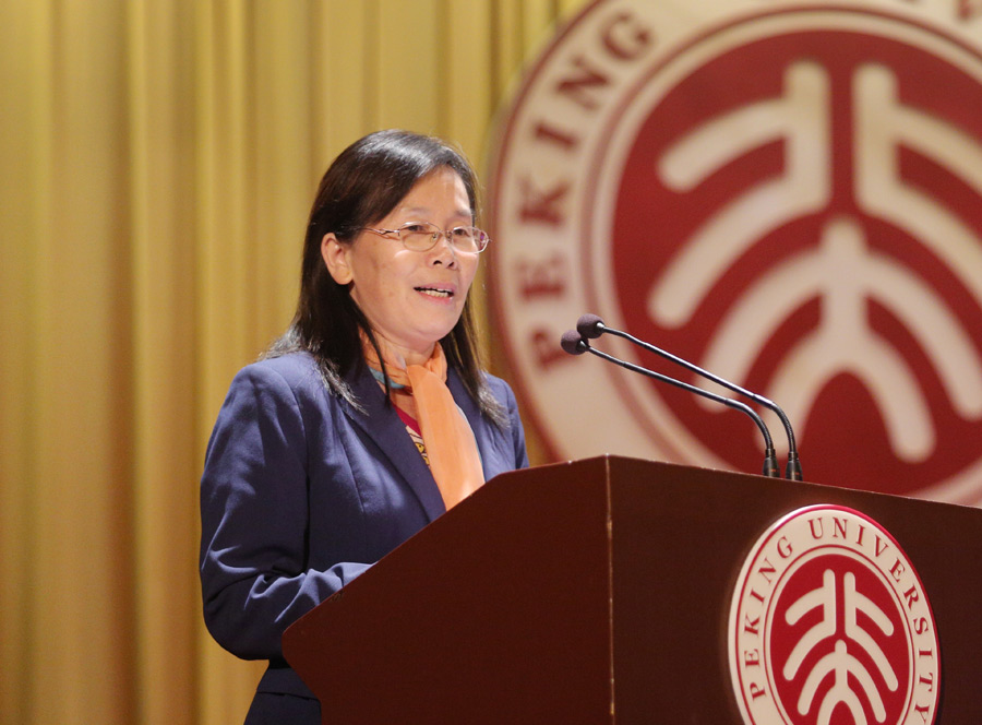 在頒獎儀式上,研究生院副院長、醫(yī)學部副主任段麗萍代表北京大學學生獎學金評審委員會介紹了2014-2015學年度光華獎學金的評審情況。陳振川執(zhí)行長、葉靜漪副書記、劉培林校友、段麗萍副院長和張慶東部長向獲獎學生代表頒發(fā)了獲獎證書。