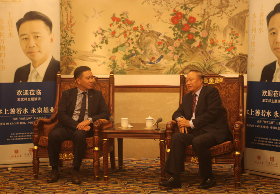 演講開始前,北京大學黨委書記、教育基金會理事長朱善璐等會見王文祥一行。朱書記對王先生家族兩代人的創(chuàng)業(yè)歷程表示贊賞,并期待與王先生家族建立深厚友誼,共同促進北京大學教育事業(yè)的進步。北京大學團委副書記張莉鑫、北京大學教育基金會副秘書長胡俊參加了會見和演講會。