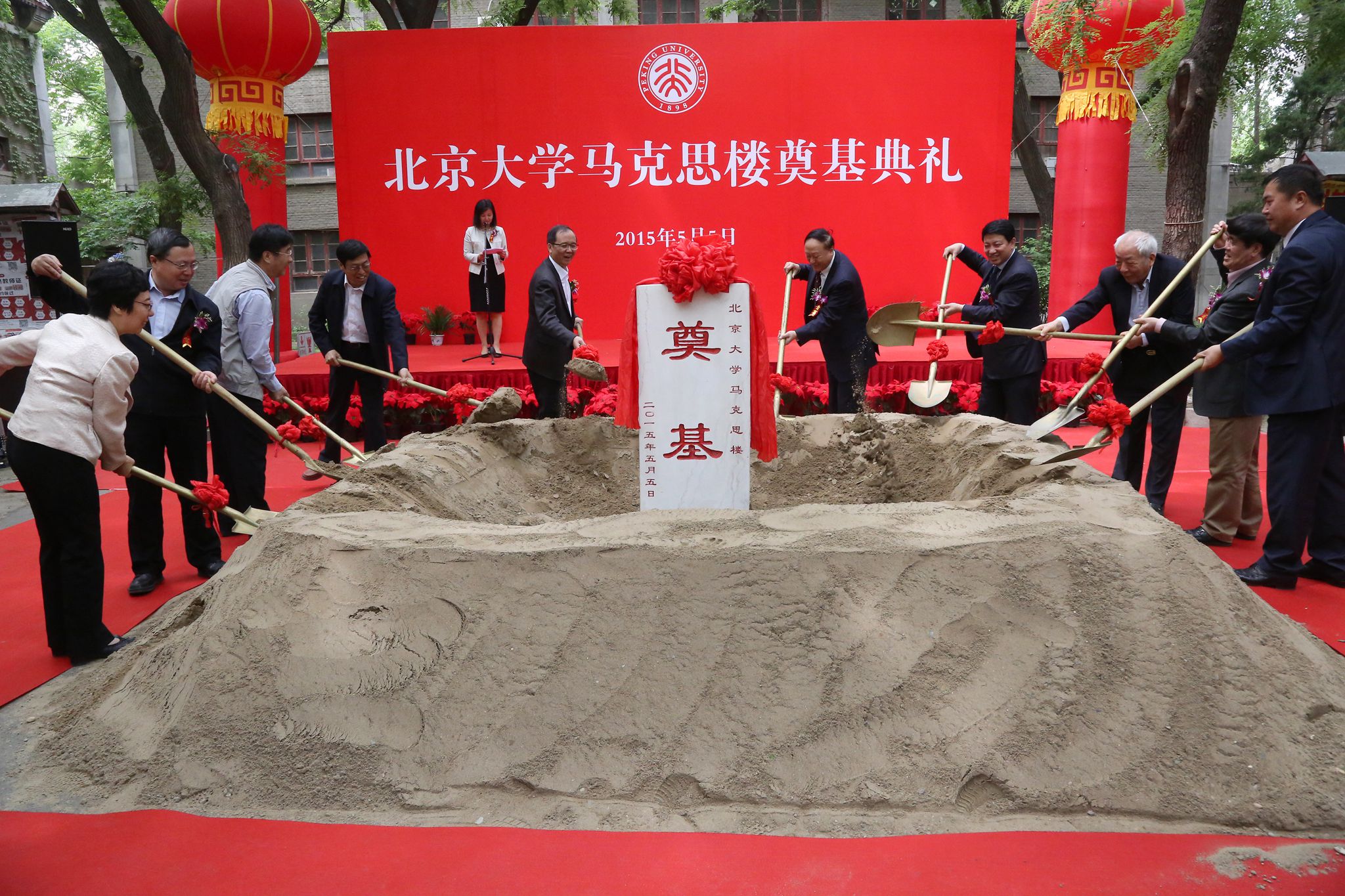 朱善璐、林建華、劉偉、王仰麟、北京大學(xué)資深教授梁柱、馬克思主義學(xué)院原院長(zhǎng)陳占安等人為“馬克思樓”揮鏟奠基。