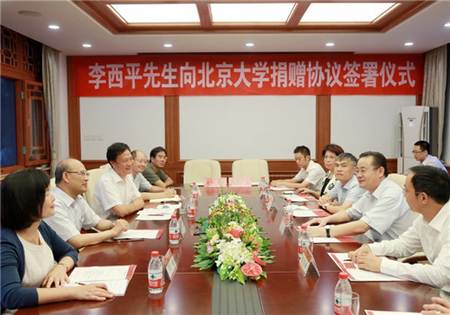 2014年8月11日,明媚陽(yáng)光灑滿燕園,北京大學(xué)臨湖軒東亭會(huì)議室里洋溢著熱烈而溫馨的氣氛,西控產(chǎn)業(yè)投資有限公司向北京大學(xué)捐贈(zèng)兩億人民幣簽字儀式、聘請(qǐng)西部發(fā)展控股有限公司董事長(zhǎng)李西平先生為名譽(yù)校董儀式在這里隆重舉行。北京大學(xué)校長(zhǎng)王恩哥院士、西部發(fā)展控股有限公司董事局主席陳遠(yuǎn)東先生、李西平董事長(zhǎng)和學(xué)校有關(guān)部門(mén)領(lǐng)導(dǎo),西控集團(tuán)代表和建筑與景觀設(shè)計(jì)學(xué)院院長(zhǎng)俞孔堅(jiān)、師生代表參加了簽字儀式,簽字儀式由北京大學(xué)校長(zhǎng)助理、教育基金會(huì)秘書(shū)長(zhǎng)鄧婭主持。