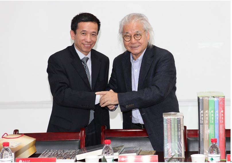 ?最后,雙方互贈(zèng)禮品。藝術(shù)學(xué)院向林先生贈(zèng)送了由名譽(yù)院長(zhǎng)、資深教授葉朗先生親筆簽名的一系列文化讀本。林祥雄先生向藝術(shù)學(xué)院贈(zèng)送了自己二十多年來的文字作品匯集。雙方都期待著未來能有更進(jìn)一步的發(fā)展與合作。