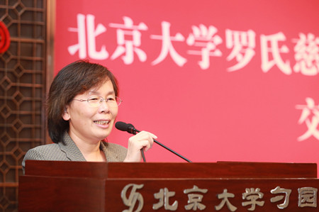 4月18日,香港羅氏慈善基金羅嘉穗主席一行到訪(fǎng)北京大學(xué),進(jìn)行為期4天的羅氏慈善基金羅定邦勵(lì)志獎(jiǎng)學(xué)金學(xué)生探訪(fǎng)和交流活動(dòng),交流晚會(huì)在正大國(guó)際中心弘雅廳舉行。香港羅氏慈善基金主席羅嘉穗女士、基金董事林孟秋教授、基金執(zhí)委冼權(quán)鋒教授、朱國(guó)強(qiáng)先生,北京大學(xué)黨委副書(shū)記葉靜漪、教育基金會(huì)副秘書(shū)長(zhǎng)趙文莉、學(xué)生資助中心主任楊?lèi)?ài)民等一同出席了晚會(huì)。