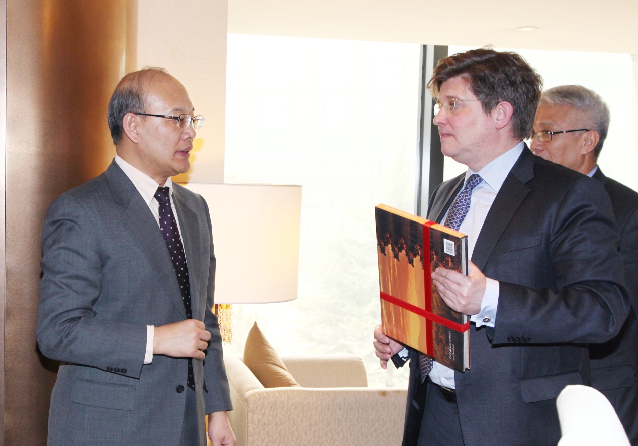 會面中,王校長對馮凱德先生一行的到來表示了熱烈的歡迎,對戴姆勒股份公司長期以來給予北京大學(xué)的支持及對北大學(xué)子的關(guān)愛表示衷心的感謝,并向到訪嘉賓介紹了學(xué)校近年來在自然科學(xué)和社會科學(xué)等多領(lǐng)域的創(chuàng)新與發(fā)展。馮凱德副總裁表示,今年是戴姆勒股份公司與北京大學(xué)建立友好合作關(guān)系20周年,希望雙方能夠開拓出更加廣闊的合作領(lǐng)域。