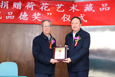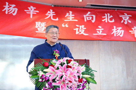 2013年12月13日上午,由楊辛先生、教育基金會和特房中心共同主辦的楊辛先生向北京大學捐贈荷花藝術(shù)藏品暨設(shè)立“楊辛荷花品德獎”儀式在北京大學萬柳學區(qū)多功能廳舉行。