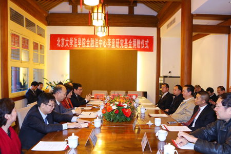 2014年1月8日下午,億利達(dá)集團(tuán)董事長李奎先生向北京大學(xué)捐贈(zèng)儀式在北大法學(xué)院四合院隆重舉行。李奎先生決定捐資設(shè)立“北京大學(xué)法學(xué)院金融法中心李奎研究基金”,資助北京大學(xué)金融法研究中心的人才培養(yǎng)、科研出版和學(xué)術(shù)交流活動(dòng)。億利達(dá)集團(tuán)董事長李奎、此次基金項(xiàng)目的發(fā)起人謝建華、華融集團(tuán)紀(jì)委書記兼副總裁戴克維、光彩集團(tuán)黨委書記兼董事長金勇、中宣部新聞局局長張凡、民政部辦公廳副主任程偉、北京大學(xué)常務(wù)副校長吳志攀、校長助理、基金會(huì)秘書長鄧婭、法學(xué)院汪建成副院長以及李奎先生的親友和部分師生代表共同出席了活動(dòng)。儀式由金融法中心副主任彭冰主持。