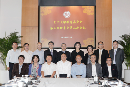 2013年9月13日,北京大學(xué)教育基金會第五屆理事會第二次會議在北京大學(xué)博雅國際會議中心舉行。北大教育基金會理事長朱善璐主持會議,北大校長王恩哥等基金會理事出席會議,基金會監(jiān)事、法律顧問和投資委員會委員列席會議。