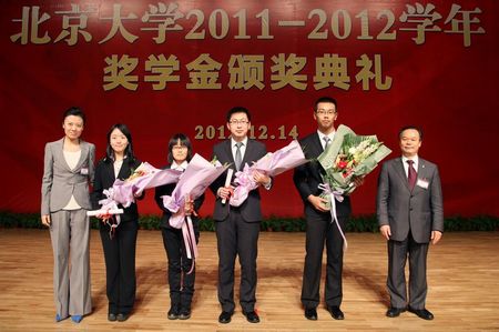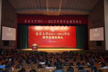 12月14日下午,北京大學(xué)2011-2012學(xué)年度獎(jiǎng)學(xué)金頒獎(jiǎng)典禮在百周年紀(jì)念講堂舉行。北大之友(香港)有限公司董事崔勁中,方正集團(tuán)副總裁兼首席品牌官魏亞歐,漢能投資集團(tuán)董事長(zhǎng)陳宏博士,李彥宏回報(bào)基金代表湯立,中國(guó)工商銀行股份有限公司投行業(yè)務(wù)總監(jiān)莫扶民等捐贈(zèng)單位代表專(zhuān)程來(lái)到北京大學(xué)出席此次頒獎(jiǎng)典禮。全國(guó)學(xué)生資助管理中心副主任馬建斌,北京大學(xué)校長(zhǎng)周其鳳,黨委常務(wù)副書(shū)記、副校長(zhǎng)張彥,常務(wù)副校長(zhǎng)吳志攀,黨委副書(shū)記葉靜漪,研究生院院長(zhǎng)陳十一,校長(zhǎng)助理、基金會(huì)秘書(shū)長(zhǎng)鄧婭及獲獎(jiǎng)學(xué)生代表參加頒獎(jiǎng)典禮。典禮由吳志攀主持。