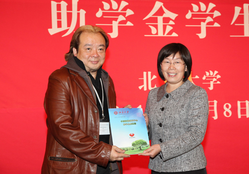 12月8日晚,北京大學(xué)2012年度中國(guó)研修班同學(xué)會(huì)助學(xué)金學(xué)生交流晚會(huì)在北京大學(xué)正大國(guó)際中心弘雅廳舉行。助學(xué)金捐贈(zèng)方嘉賓中國(guó)研修班吳家榮會(huì)長(zhǎng)、陳少霞前會(huì)長(zhǎng)、蘇永安前會(huì)長(zhǎng)、麥貫之前會(huì)長(zhǎng)、黃勵(lì)騰前會(huì)長(zhǎng)攜四十余名學(xué)員專程從香港前來與受助學(xué)子進(jìn)行交流。北京大學(xué)黨委副書記葉靜漪出席了晚會(huì),學(xué)生資助中心主任楊愛民、教育基金會(huì)副秘書長(zhǎng)李榕、以及負(fù)責(zé)北京大學(xué)中國(guó)研修班同學(xué)會(huì)項(xiàng)目的對(duì)外交流中心主任陳振亞等老師一起出席晚會(huì)。