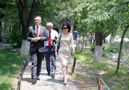 夏始春余,綠茵茂草。5月30日,戴姆勒股份公司副總裁葉格先生、戴姆勒東北亞投資有限公司公司事務(wù)副總裁李潔等一行四人專程來到北大。上午,北京大學(xué)校長助理、教育基金會秘書長鄧婭接待并與戴姆勒股份公司嘉賓親切交談,并陪同嘉賓參觀校園。