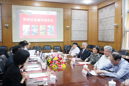 2011年5月27日下午,唐仲英教育基金會董事長唐仲英、執(zhí)行董事徐小春、唐仲英基金會江蘇辦事處主任孫幼帆、唐仲英基金會指導老師劉裕品一行四人來到北京大學,與校領導及獲獎學生進行會面。北京大學常務副書記、副校長張彥,校長助理、教育基金會秘書長鄧婭,校長助理、社會科學部部長李強,校長助理、黨辦校辦主任、學生工作部部長馬化祥,以及各相關部門代表和部分唐仲英獎學金獲獎學生參加了此次會談。會談在辦公樓禮堂103室進行。