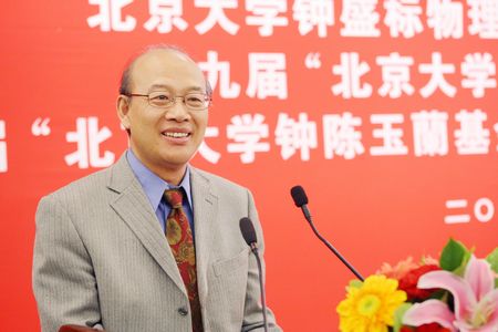 5月26日上午,“北京大學(xué)鐘盛標(biāo)物理教育基金”十周年慶典暨第九屆“北京大學(xué)鐘盛標(biāo)物理教育基金”、第五屆“北京大學(xué)鐘陳玉蘭基金”、“北京大學(xué)毛玉剛基金”頒獎(jiǎng)會(huì)在英杰交流中心新聞發(fā)布廳舉行。基金設(shè)立者、北京大學(xué)客座教授鐘賜賢博士及夫人夏曉巒博士,北京大學(xué)副校長(zhǎng)、物理學(xué)院院長(zhǎng)王恩哥,校長(zhǎng)助理朱星,教務(wù)部副部長(zhǎng)金頂兵,化學(xué)與分子工程學(xué)院院長(zhǎng)吳凱,工學(xué)院常務(wù)副院長(zhǎng)張東曉,教育基金會(huì)副秘書長(zhǎng)許諍,物理學(xué)院、化學(xué)學(xué)院、教務(wù)部等各院系部門的師生代表以及鐘先生夫婦的好友共百余人出席了典禮。頒獎(jiǎng)會(huì)由北京大學(xué)校長(zhǎng)助理、教育基金會(huì)秘書長(zhǎng)鄧婭主持。