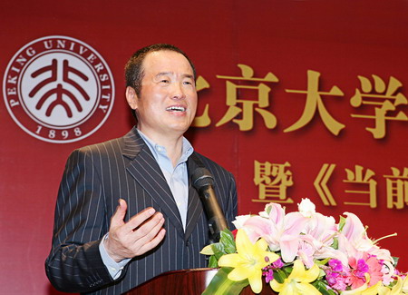 在熱烈的掌聲中,厲以寧教授登臺發(fā)表主題演講。厲先生就當(dāng)前中國的經(jīng)濟(jì)發(fā)展中的結(jié)構(gòu)調(diào)整、通貨膨脹,和城鄉(xiāng)差距加大等三個重要問題展開論述,清晰扼要地介紹經(jīng)濟(jì)學(xué)界的不同看法,通過中外實例的生動對比,深入剖析以上問題的成因,并提出他對解決問題的觀點。在其后的交流環(huán)節(jié)中,厲先生就房地產(chǎn)拐點、外匯儲備問題、人民幣匯率走勢等大家普遍關(guān)心的問題發(fā)表了看法。厲先生的演講深入淺出、敏銳犀利、一針見血,并且不乏幽默,引發(fā)來賓們的陣陣掌聲和笑聲。