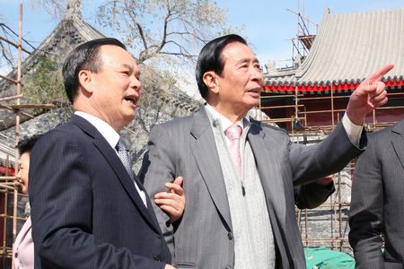 雨后初晴的燕園風和日暖、春意盎然,李兆基先生在周其鳳校長的陪同下,沿人文學苑的中軸線前行,參觀了整個園區(qū)。初顯輪廓的人文學苑院落層疊,樓閣相連,步移景異,當聽說這是全世界占地面積最大的人文學苑時,李先生非常高興,并對北京大學的建設效率十分滿意。