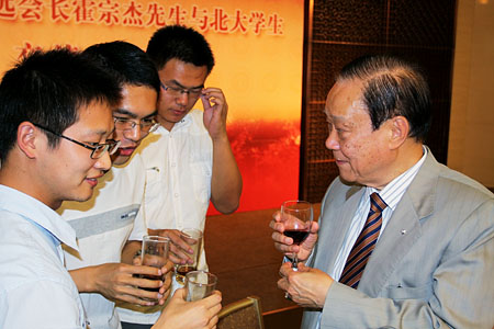 會(huì)面后,霍宗杰先生與百余名北大學(xué)生共同參加了交流午宴。正值中國(guó)的傳統(tǒng)節(jié)日端午節(jié),午宴現(xiàn)場(chǎng)氣氛隆重而溫馨,霍先生與青年學(xué)子進(jìn)行了面對(duì)面的親切交流,傳授了許多人生道理和成功經(jīng)驗(yàn)。