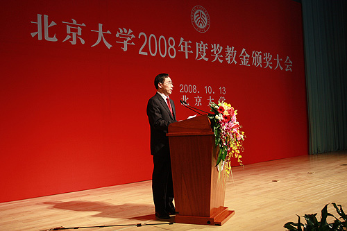 10月13日下午,北京大學(xué)2008年度獎(jiǎng)教金頒獎(jiǎng)大會(huì)在百周年紀(jì)念講堂隆重舉行。北京大學(xué)黨委書記閔維方、北京大學(xué)黨委常務(wù)副書記吳志攀、北京大學(xué)常務(wù)副校長柯楊等領(lǐng)導(dǎo)出席,并與來自碧桂園集團(tuán)、中國工商銀行、正大集團(tuán)、寶潔集團(tuán)、北京銀行、北大方正、北大青鳥的捐贈(zèng)方代表,共同為獲獎(jiǎng)教師頒獎(jiǎng)。