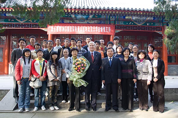 “北京大學(xué)ING助學(xué)金簽字儀式暨學(xué)生見面會(huì)”于2008年11月5日下午在北京大學(xué)教育基金會(huì)舉行。ING保險(xiǎn)及投資管理亞太區(qū)副主席翟健先生、 ING保險(xiǎn)中國(guó)區(qū)首席代表?xiàng)铥惥繉3腾s來出席了簽字儀式。出席儀式的北京大學(xué)方面領(lǐng)導(dǎo)有北京大學(xué)校務(wù)委員會(huì)張彥副主任、北京大學(xué)教育基金會(huì)鄧婭秘書長(zhǎng)、北京大學(xué)學(xué)生資助中心楊愛民主任。出席簽字儀式的還有北京大學(xué)的教師、學(xué)生代表和相關(guān)部門工作人員。