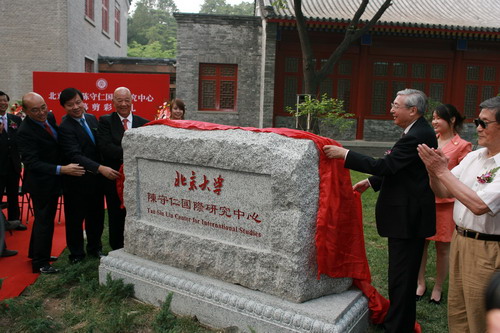 陳守仁先生與北京大學(xué)結(jié)緣于1998年,自百周年校慶以來他一直關(guān)注學(xué)校的發(fā)展建設(shè)。早在1999年他就慷慨捐資設(shè)立“孫中山思想國際研究中心”,此后他又多次支持學(xué)校的學(xué)術(shù)研究和基礎(chǔ)建設(shè)。為了助力北大創(chuàng)建世界一流大學(xué),促進北大的國際研究與對外交流,他慨然捐資650萬元人民幣支持“北京大學(xué)國際研究中心”的建設(shè)。中心位于未名湖南側(cè),目前已有世界文化遺產(chǎn)研究中心、歐洲研究中心、德國研究中心、北京論壇等校內(nèi)多家研究機構(gòu)進駐辦公。