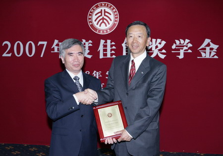 5月13日下午,北京大學(xué)2007年度佳能獎學(xué)金頒獎儀式在北大英杰交流中心舉行。佳能獎學(xué)基金于1998年設(shè)立,佳能公司(Canon Co)先后捐資5000萬日元作為獎學(xué)基金的本金,每年利用基金受益發(fā)放獎學(xué)金。目前基金本金達(dá)到250余萬元人民幣,十年來累積發(fā)放獎學(xué)金155萬余元,獲獎學(xué)生589人次。2007年度,佳能獎學(xué)金(Canon Scholarship)獎勵金額達(dá)116,000元人民幣,資助本科一年級學(xué)生29人,每人4000元。