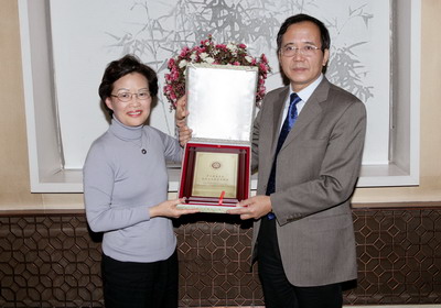 林建華常務副校長向羅嘉穗主席授予“北京大學教育貢獻獎”