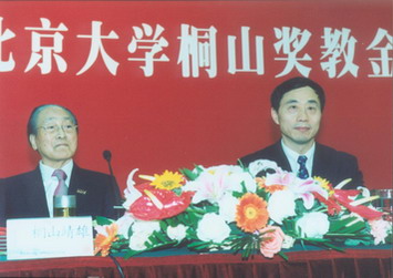 桐山先生是日本宗教界知名人士,多年來致力于世界和平與中日友好事業(yè),為推動中日兩國在文化教育、醫(yī)學(xué)及佛教界等領(lǐng)域的交流做出了積極貢獻。桐山獎教金1998年在我校設(shè)立,2000年初,桐山先生又慷慨捐資100萬美元,在我校設(shè)立了“桐山教育基金”, 每年用基金的收益支持北大的教育科研事業(yè)。桐山獎教金自設(shè)立以來已有170余位優(yōu)秀教師獲得該項獎教金,獎勵總額達100萬元人民幣。本年度獲獎的10位教師在頒獎會上領(lǐng)取了獲獎證書。