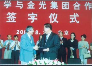 為進一步加強北京大學(xué)與金光集團的合作,增強北京大學(xué)的辦學(xué)實力和金光集團在國際市場上的競爭力,促進雙方共同發(fā)展,北京大學(xué)與金光集團于2002年8月2日隆重簽署了合作協(xié)議。